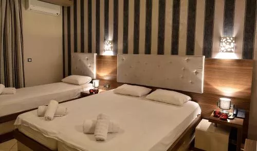 Toate camerele cu aer condiționat se deschid către un balcon mobilat, unele cu vedere la mare sau la Muntele Olimp. Decorate în stil etnic, acestea sunt dotate cu televizor prin satelit și frigider. De asemenea, unele tipuri de camere oferă și o zonă de relaxare.