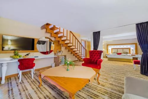 Situat în Okurcalar, Justiniano Deluxe Resort, cu sistem all-inclusive, oferă o zonă de plajă privată cu șezlonguri și umbrele gratuite, o piscină exterioară cu tobogane și o piscină interioară. Există un centru de fitness, saună, baie turcească și facilități de masaj. Wi-Fi gratuit este disponibil în toate zonele comune.