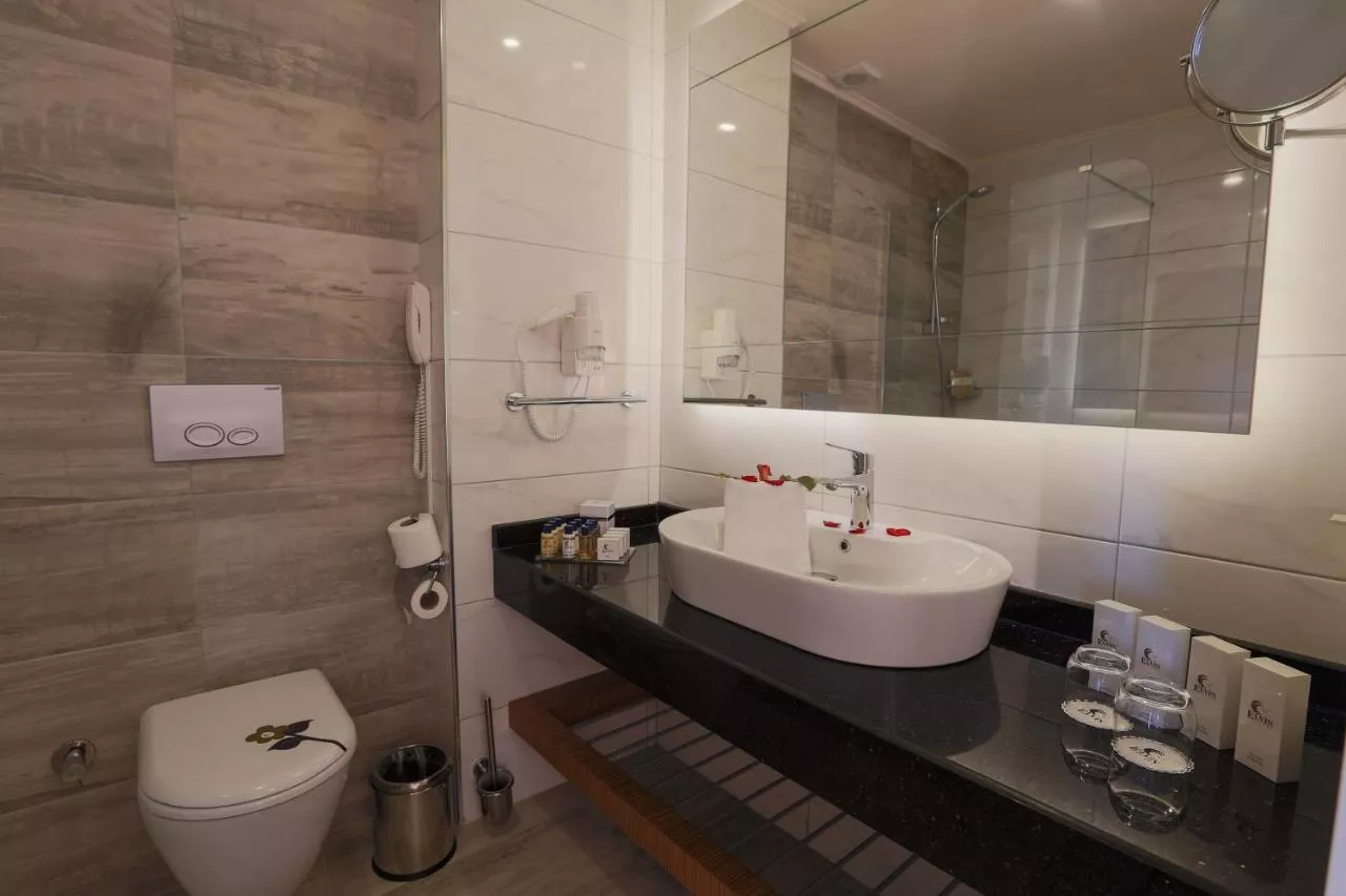 Camerele sunt dotate cu o baie privată echipată cu duș. Pentru confortul dumneavoastră, veți găsi papuci și produse de toaletă gratuite.
