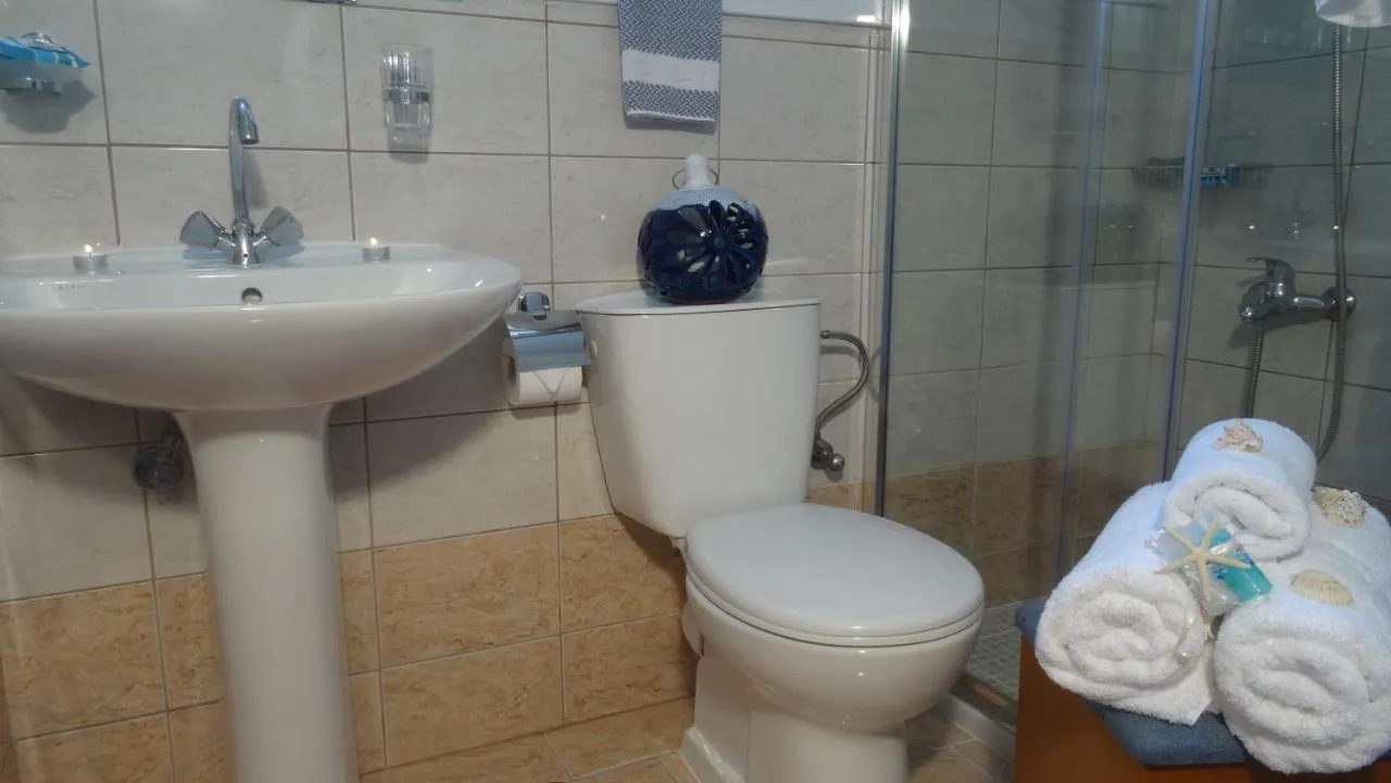 Food & Drink: Tea/Coffee maker Kitchenette Refrigerator Microwave Kitchen Electric kettle Kitchenware Stovetop Coffee machine Dining table Bottle of water Fruits Wine glasses Bathroom: Shower Hairdryer Free toiletries Toilet Private bathroom Shared toilet Toilet paper Shampoo Body soap Room Amenities: Safety deposit box Air conditioning Iron Heating Dressing room Private entrance Soundproofing Tile/marble floor Wardrobe or closet Cleaning products Pool towels Trash cans Cribs Socket near the bed Adapter Non-feather pillow Media & Technology: TV Satellite channels Cable channels Flat-screen TV Outdoor & View: Balcony View Sea view Services & Extras: Towels Linen Key access Entertainment and family services: Baby safety gates Accessibility: Walk-in shower
