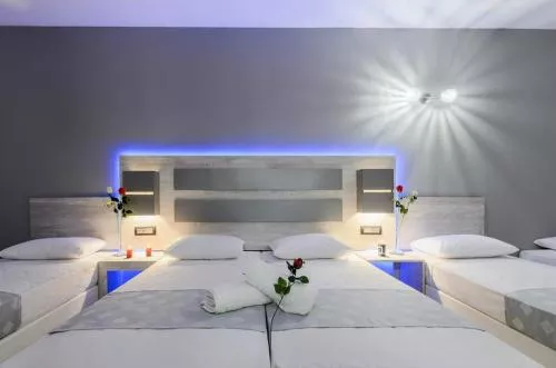 The quadruple room offers air conditioning, a wardrobe, as well as a private bathroom featuring a shower and a hairdryer. The quadruple room provides a safe deposit box, an electric kettle and a balcony. The unit offers 4 beds.