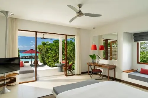Dimensiuni: 170 mp Numar de camere: 2 camere Aceste vile mari cu 1 dormitor sunt amplasate pe plajă și oferă o zonă de living separată și o piscină de relaxare luxoasă. Din partea din față, oaspeții pot admira vederea liniștitoare la apele cristaline.