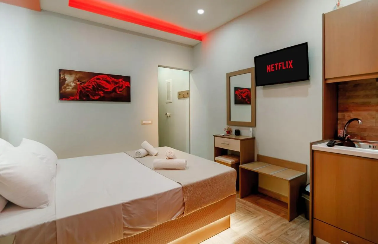 Bucătărie: Masă Frigider Prăjitor de pâine Plită de gătit Ustensile de bucătărie Chicinetă Cană fierbător Bucătărie Accesibilitate: Etaje superioare accesibile doar pe scări Media/Tehnologie: TV cu ecran plat TV Serviciu de streaming (ex. Netflix) Dormitor: Paturi extra lungi (> 2 metri) Lenjerie de pat Garderobă sau dulap Vedere: Vedere la munte Vedere la oraș Zonă de living: Canapea Zonă de relaxare Exterior: Mobilier de grădină Terasă Balcon Zonă de luat masa în aer liber General : Fier de călcat Pardoseală de gresie/marmură Încălzire Izolare fonică Plasă de ţânţari Aer condiţionat Baie: Prosoape Articole de toaletă gratuite Uscător de păr Toaletă Duş Hârtie igienică Baie privată Caracteristicile clădirii: Apartament privat în clădire Facilităţile camerei: Priză lângă pat Canapea extensibilă Distanțare fizică: Aer condiționat individual pentru fiecare cameră de la proprietate Curățenie și dezinfectare: Dezinfectant pentru mâini