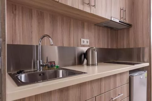 Dimensiuni: 30 mp Numar de camere: 5 camere Bucătăria complet utilată are frigider, ustensile de bucătărie și aparat de ceai/cafea. Această cameră cvadruplă are aer condiționat, TV cu ecran plat cu canale prin satelit, baie privată și balcon cu vedere la grădină. Baie privată cu cadă
