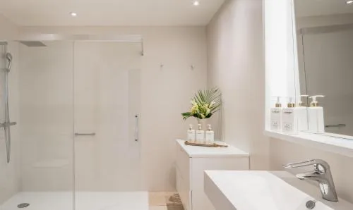 Dimensiuni: 35 mp Numar de camere: 1 camera Această cameră dublă spațioasă are pereți izolați fonic, aer condiționat, baie privată cu duș tip walk-in și balcon cu vedere la mare. Unitatea de cazare este dotată cu 1 pat. Baie privată cu duș