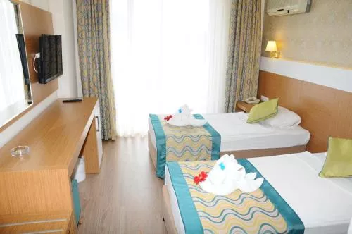 Camerele cu podele acoperite cu covor de la Hotelul Kemer Dream au o baie privată cu uscător de păr. Un minibar este de asemenea standard.