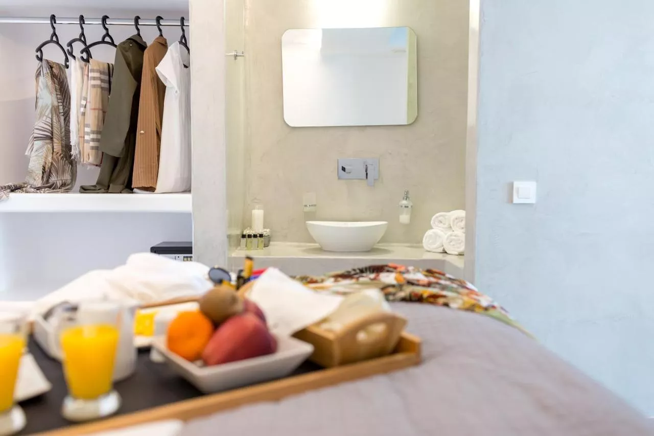 Toate suitele cu aer condiționat de la Dreaming View au vedere la caldera și vulcan sau parțial la Marea Egee și deschid spre o terasă mobilată. Fiecare are o zonă de relaxare cu canapea încorporată și televizor cu ecran plat și satelit, precum și o chicinetă cu frigider mini. Un uscător de păr și papuci sunt inclusi.