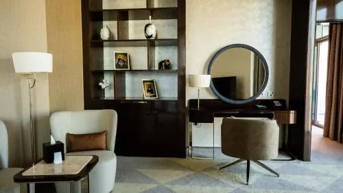 Dimensiuni: 211 mp Numar de camere: 1 camera Suita spațioasă are 1 dormitor, zonă de relaxare și 1 baie cu duș tip walk-in și cadă. Suita cu aer condiționat are TV cu ecran plat cu canale prin cablu, zonă de luat masa, minibar, aparat de ceai/cafea și vedere la oraș. Unitatea de cazare include 1 pat.