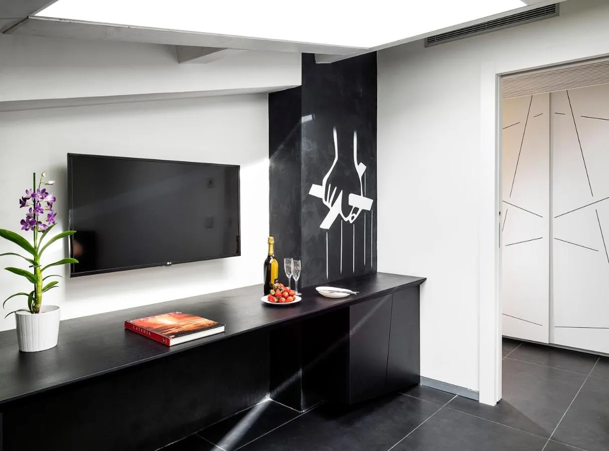 Bucătărie: Mașină de cafea Masă Cuptor cu microunde Chicinetă Cană fierbător General : Seif Hipoalergică Intrare privată Încălzire Izolare fonică Aer condiţionat Accesibilitate: Etaje superioare accesibile cu liftul Media/Tehnologie: TV cu ecran plat TV Telefon Canale prin satelit Servicii: Serviciu de trezire Facilități de siguranță: Purificatoare de aer Baie: Prosoape Articole de toaletă gratuite Papuci de casă Uscător de păr Toaletă Duş bideu Hârtie igienică Baie privată Facilităţile camerei: Priză lângă pat Mâncăruri și băuturi: Aparat pentru prepararea de ceai/cafea Minibar Exterior: Balcon Dormitor: Lenjerie de pat Dressing Garderobă sau dulap Vedere: Vedere la oraș Vedere la punct de atracţie Distanțare fizică: Aer condiționat individual pentru fiecare cameră de la proprietate Zonă de living: Zonă de luat masa