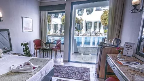 Facilităţile camerei: Seif Zonă de relaxare Priză lângă pat Pardoseală de gresie/marmură Garderobă sau dulap Aer condiţionat Media/Tehnologie: TV cu ecran plat TV Telefon Canale prin satelit Servicii/Suplimente: Serviciu de trezire Prosoape Lenjerie de pat Exterior/Vedere: Vedere la piscină Terasă Patio Balcon Vedere la grădină Baie: Uscător de păr Toaletă Duş Baie privată Mâncăruri și băuturi: Minibar Cană fierbător Distanțare fizică: Aer condiționat individual pentru fiecare cameră de la proprietate Curățenie și dezinfectare: Dezinfectant pentru mâini