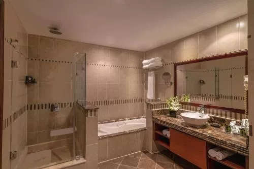 Dimensiuni: 74 mp Numar de camere: 14 camere Această suită are o terasă sau un balcon mare cu vedere la grădină, la piscină sau vedere laterală la mare, o zonă de living spațioasă, TV LCD de 40 inch rotativ, WiFi gratuit, dressing, minibar gratuit (apă, băuturi răcoritoare și bere completate zilnic gratuit), facilități de ceai și cafea, precum și o baie spațioasă cu chiuvetă dublă, cadă și cabină de duș separată. Baie privată cu duș