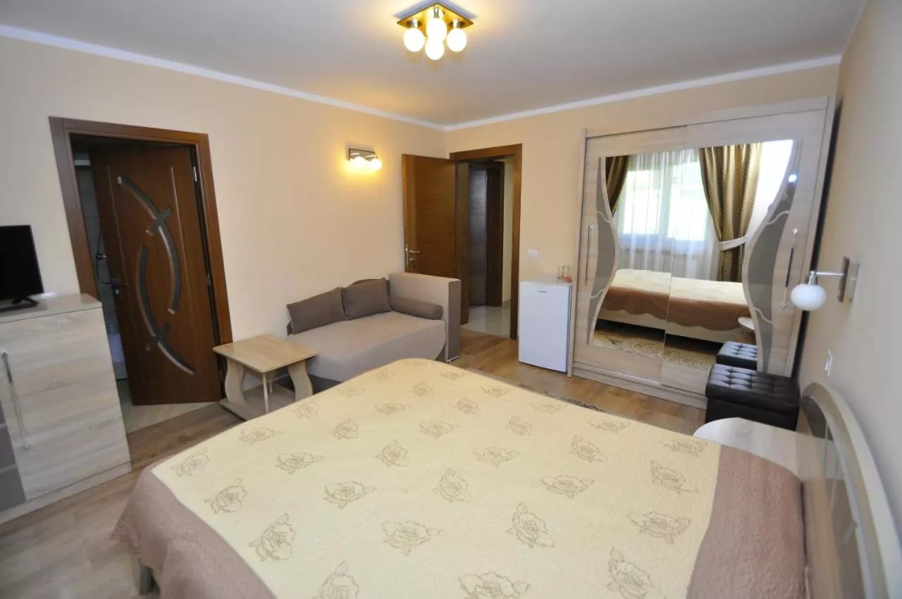 Dimensiuni: 30 mp Numar de camere: 2 camere Spacious suite with 2 bedrooms, each fitted with a balcony with mountain views, free WiFi, satellite TV, and a private bathroom with a shower or a bathtub. Baie privată cu duș