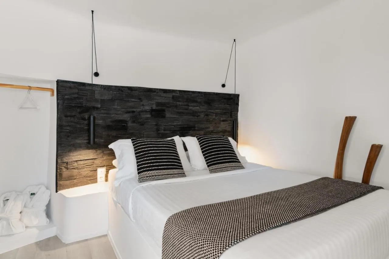 Sculptate în stâncă și construite în stilul tradițional al Cicladelor, studiourile și suitele Mill Houses sunt dotate cu toate conforturile moderne, inclusiv aer condiționat și televizoare cu ecran plat și satelit.