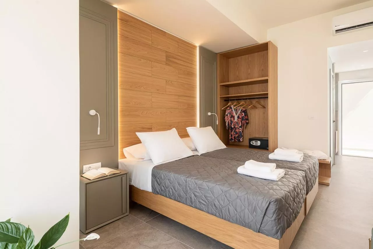 Camerele hotelului sunt dotate cu aer condiționat, un birou, un balcon cu vedere la oraș, o baie privată, un televizor cu ecran plat, lenjerie de pat și prosoape. Elia Platanias dispune de unele unități care au o terasă, iar toate camerele au o mașină de cafea. Toate camerele pentru oaspeți vor oferi oaspeților un frigider.