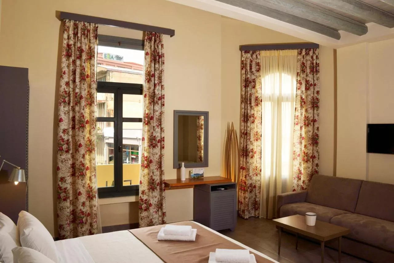 Pensiunea oferă oaspeților camere cu aer condiționat, dotate cu un dulap, o mașină de cafea, un frigider, un seif, un televizor cu ecran plat și o baie privată cu bideu. La Elia Kentron, fiecare cameră este dotată cu lenjerie de pat și prosoape.