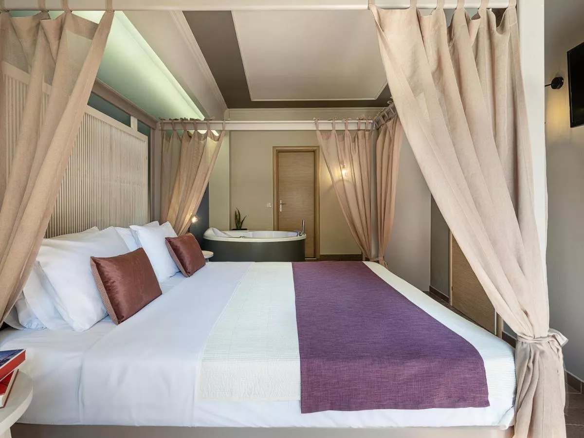 Oferind interioare relaxante și paturi cu patru stâlpi, toate camerele de la Elia se deschid spre un balcon. Fiecare are un televizor cu satelit, cafetieră și frigider mini. Baia modernă este dotată cu cabină de duș, papuci și produse de toaletă gratuite.