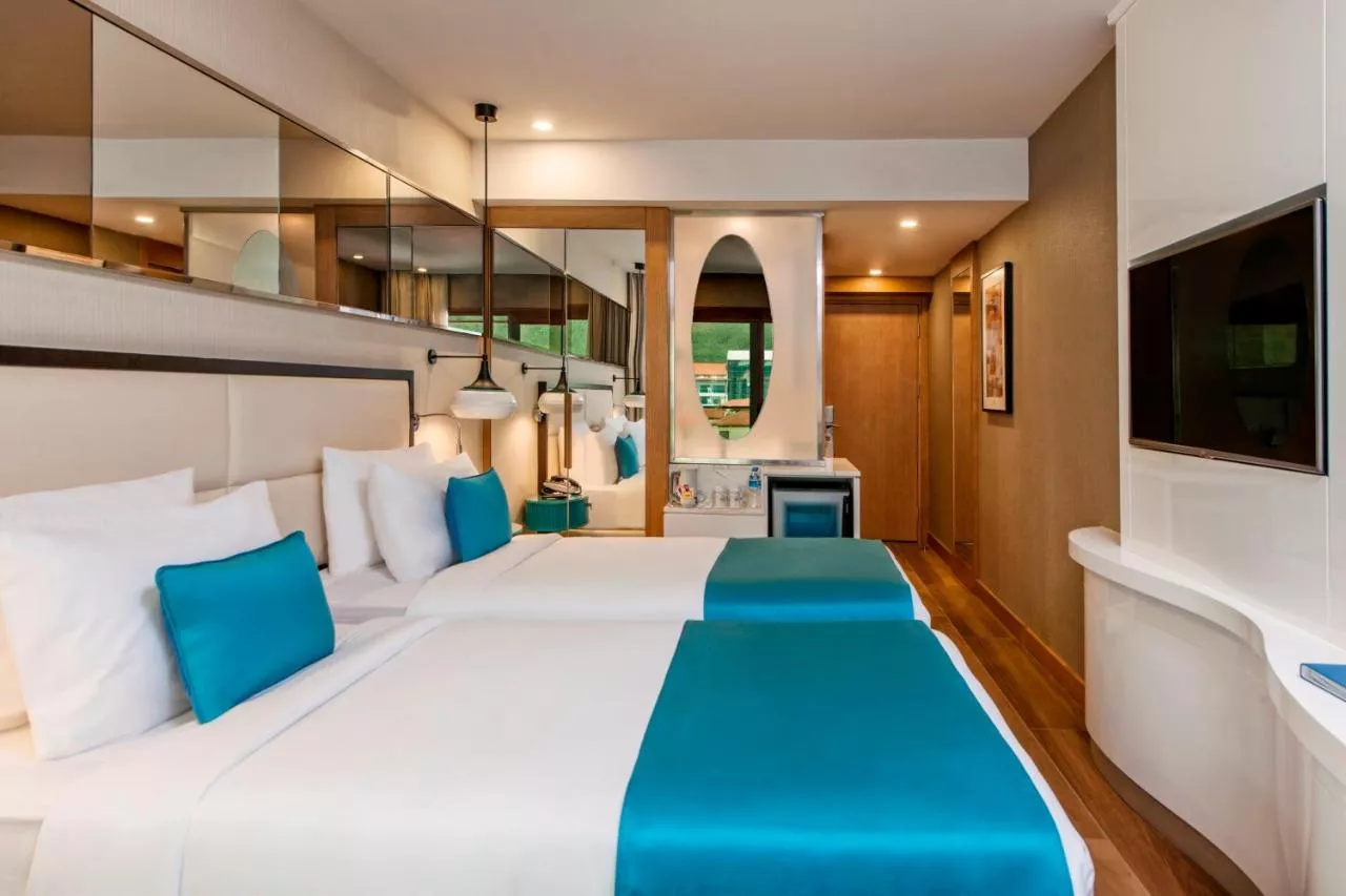 Dimensiuni: 19 mp Numar de camere: 2 camere All Superior Room with 2 Single Beds rooms that will make you feel special feature a telephone, high-speed Wi-Fi connection, cable TV channels, safe box, lockable window, complimentary tea & coffee service, Full HD Led smart TV, electronic door locking system, split air-conditioner, desk, soundproof, wardrobe, hair dryer, make-up mirror, minibar, electric kettle, pillow menu, bathroom, shower and bathroom amenities. Baie privată cu duș