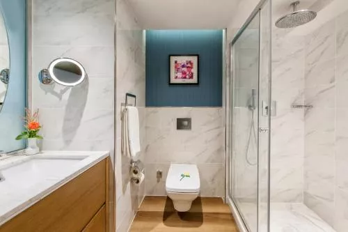 Food & Drink: Tea/Coffee maker Minibar Refrigerator Electric kettle Coffee machine Bottle of water Bathroom: Shower Hairdryer Bathrobe Free toiletries Toilet Private bathroom Slippers Toilet paper Toothbrush Shampoo Conditioner Body soap Shower cap Room Amenities: Safety deposit box Air conditioning Heating Soundproofing Tile/marble floor Mosquito net Wardrobe or closet Drying rack for clothing Pool towels Trash cans Socket near the bed Adapter Feather pillow Non-feather pillow Hypoallergenic pillow Media & Technology: TV Telephone Satellite channels Flat-screen TV Mobile hotspot device Outdoor & View: Balcony View Sea view Services & Extras: Wake-up service Towels Linen Lockers Key access Key card access Safety & security: Smoke alarm Fire extinguisher Safety features: Air purifiers Physical distancing: Single-room air conditioning for guest accommodation Cleanliness & disinfecting: Hand sanitiser