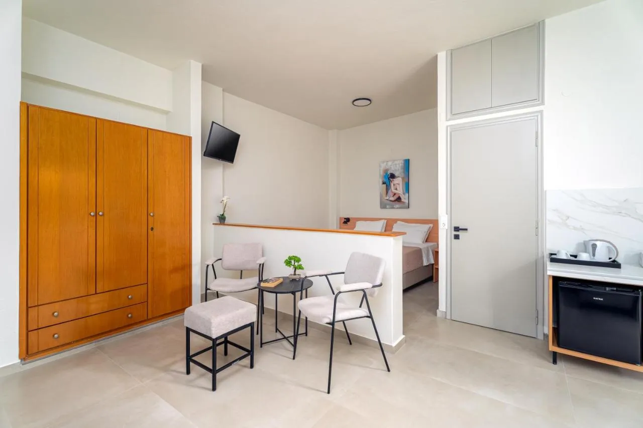 Acest hotel de pe litoral se află în districtul Ammoudara din Heraklion, la doar 40 de metri de plaja cu Steag Albastru din Ammoudaras. Dispune de un bar în hol cu televizor cu satelit și oferă camere cu vedere la mare și Wi-Fi gratuit.