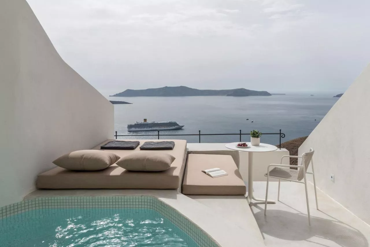Cu vedere la vulcan, acest hotel elegant din Santorini oferă camere cu vedere la mare și balcoane private. Se mândrește cu o terasă panoramică spațioasă, dotată cu un cafenea și un bar.