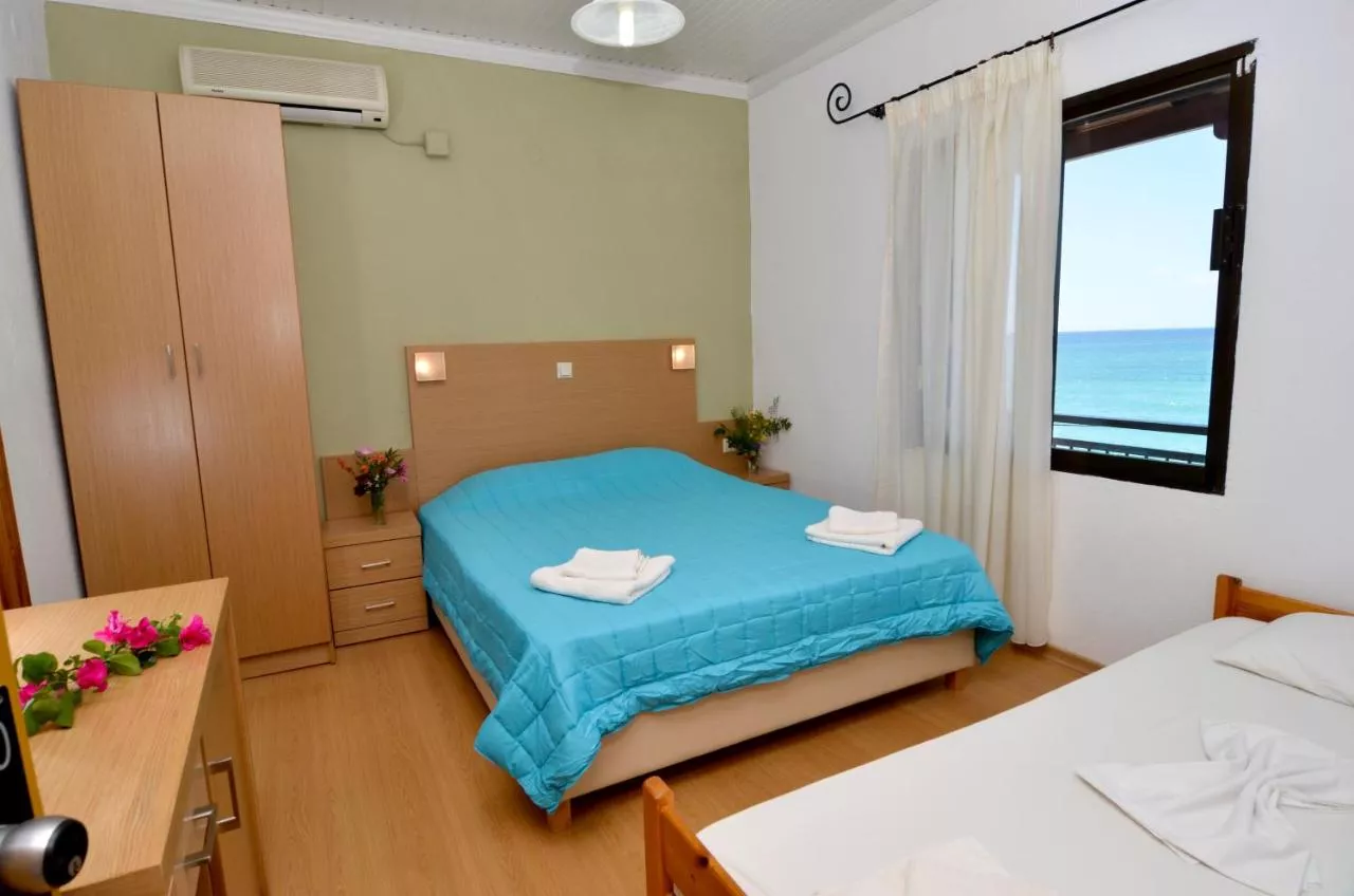 Dimensiuni: 15 mp Numar de camere: 4 camere Această cameră dotată cu aer condiționat se deschide spre un balcon sau patio cu vedere la Marea Egee sau la pădure. Are acces gratuit la internet WiFi, TV prin satelit și mini-frigider. Baie privată cu duș