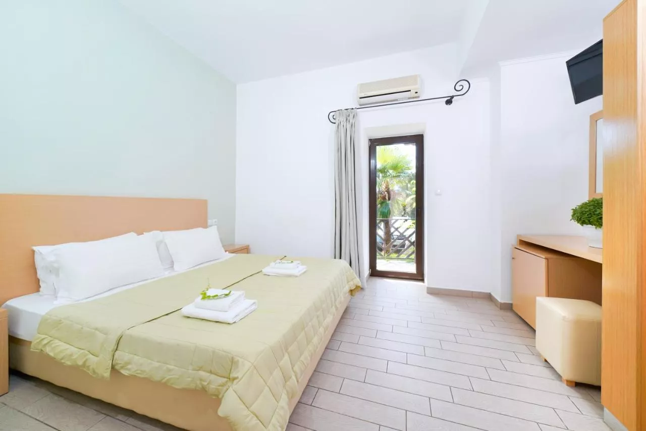 Dimensiuni: 15 mp Numar de camere: 1 camera Această cameră dotată cu aer condiționat se deschide spre un balcon sau patio cu vedere la Marea Egee sau la pădure. Are acces gratuit la internet WiFi, TV prin satelit și mini-frigider. Baie privată cu duș