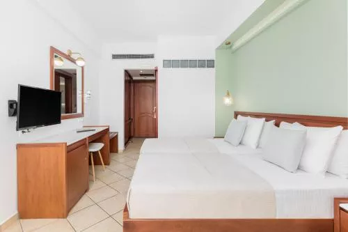 Dimensiuni: 30 mp Numar de camere: 1 camera Balconul oferă vedere la Muntele Olimp. Dotările includ WiFi gratuit, TV LCD, aer condiţionat, birou, minibar, frigider şi seif. Baia elegantă are duș tip walk-in cu hidromasaj.