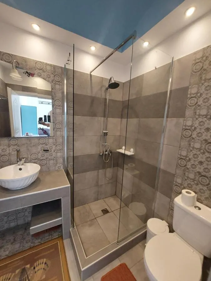 Bucătărie: Mașină de cafea Frigider Cană fierbător Produse de curățenie General : Seif Fier de călcat Ventilator Pardoseală de gresie/marmură Intrare privată Cameră(e) comunicantă(e) disponibilă(e) Aer condiţionat Vedere: Vedere la mare Vedere la munte Vedere la curtea interioară Vedere la oraș Vedere la punct de atracţie Media/Tehnologie: TV cu ecran plat TV Exterior: Mobilier de grădină Balcon Zonă de luat masa în aer liber Facilităţile camerei: uscător de rufe Priză lângă pat Baie: Prosoape Articole de toaletă gratuite Uscător de păr Toaletă Duş Hârtie igienică Baie privată Mâncăruri și băuturi: Aparat pentru prepararea de ceai/cafea Minibar Dormitor: Lenjerie de pat Garderobă sau dulap