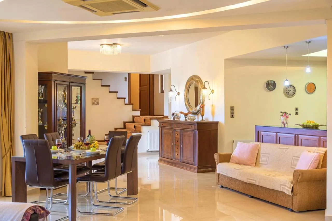 Situata in Adelianos Kampos si la doar 1.8 km de Plaja Adelianos Kampos, Villa Evelina ofera cazare cu vedere la mare, WiFi gratuit si parcare privata gratuita. Cu vedere la munte, aceasta cazare ofera o terasa si o piscina.