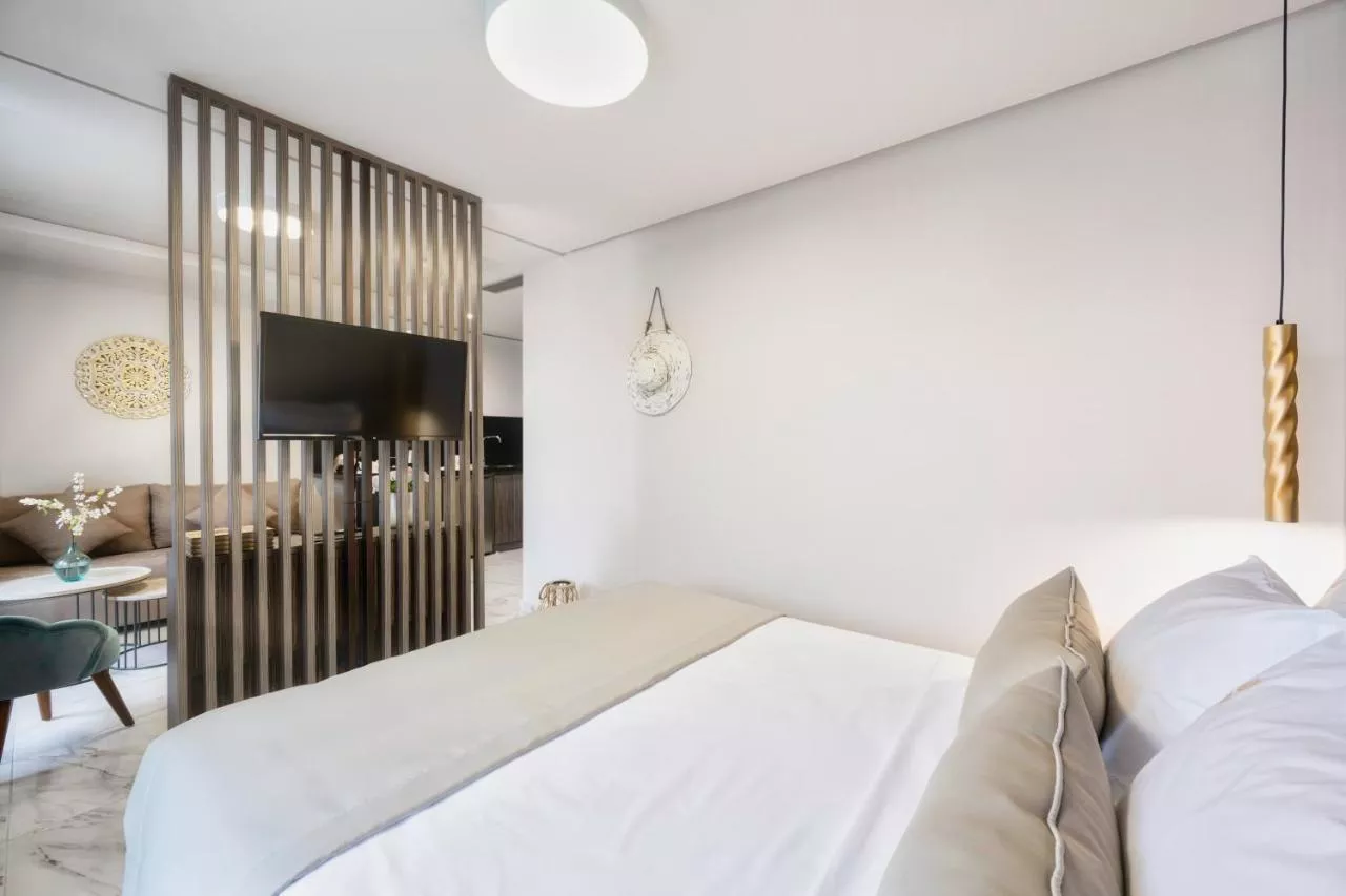 Situat la 300 de metri de plaja Hanioti, Evitel Luxury Living oferă un salon comun și cazare cu aer condiționat, balcon și WiFi gratuit.