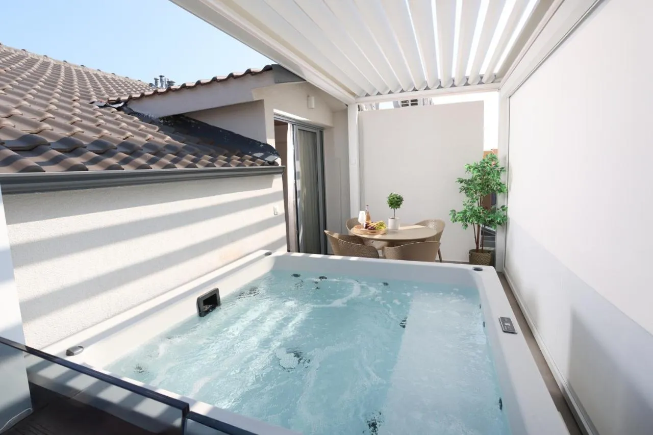 Dimensiuni: 45 mp Numar de camere: 1 camera This suite features a hot tub. Boasting a private entrance, this air-conditioned suite features 1 living room, 2 separate bedrooms and 1 bathroom with a bath and a shower. The fully equipped kitchenette has a stovetop, a refrigerator, kitchenware and a toaster. Featuring a balcony with a quiet street view, this suite also features a tea and coffee maker and a flat-screen TV with streaming services. The unit has 3 beds.