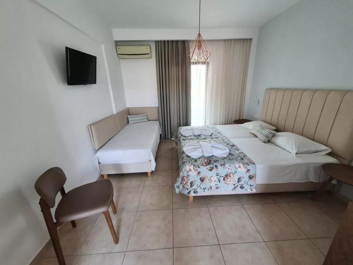 Camerele cu aer condiționat includ un televizor și un frigider. Fiecare se deschide spre un balcon.