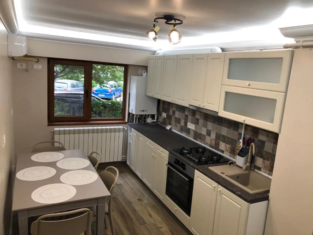Dimensiuni: 60 mp Numar de camere: 2 camere This air-conditioned apartment consists of 1 living room, 1 separate bedroom and 1 bathroom with a bath. The well-fitted kitchen features a refrigerator, an oven and a microwave. The apartment provides a washing machine, a tea and coffee maker, a wardrobe, a flat-screen TV, as well as garden views. The unit offers 2 beds.