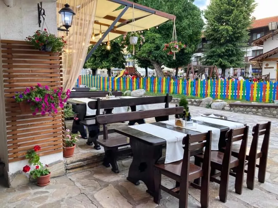 Restaurantul proprietății servește bucătărie tradițională bulgară, care poate fi savurată în interior, în jurul unui șemineu deschis din piatră, sau în aer liber, pe terasa care dă spre locul de joacă pentru copii.
