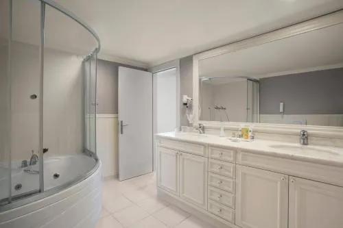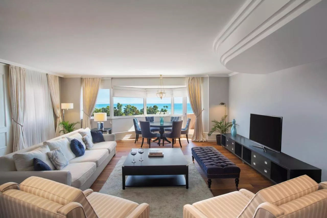 Dimensiuni: 55 mp Numar de camere: 4 camere Această suită spațioasă include 1 dormitor, zonă de relaxare și 1 baie cu duș și cadă. De asemenea, această suită are pereți izolați fonic, aer condiționat, TV cu ecran plat și canale prin satelit și balcon. Unitatea este prevăzută cu 2 paturi.