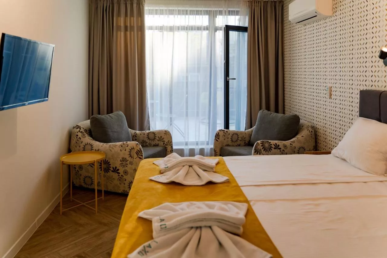 Action AquaPark se află la 33 km de hotel. Cel mai apropiat aeroport este Aeroportul Burgas, la 62 km de Family Hotel LAXO.