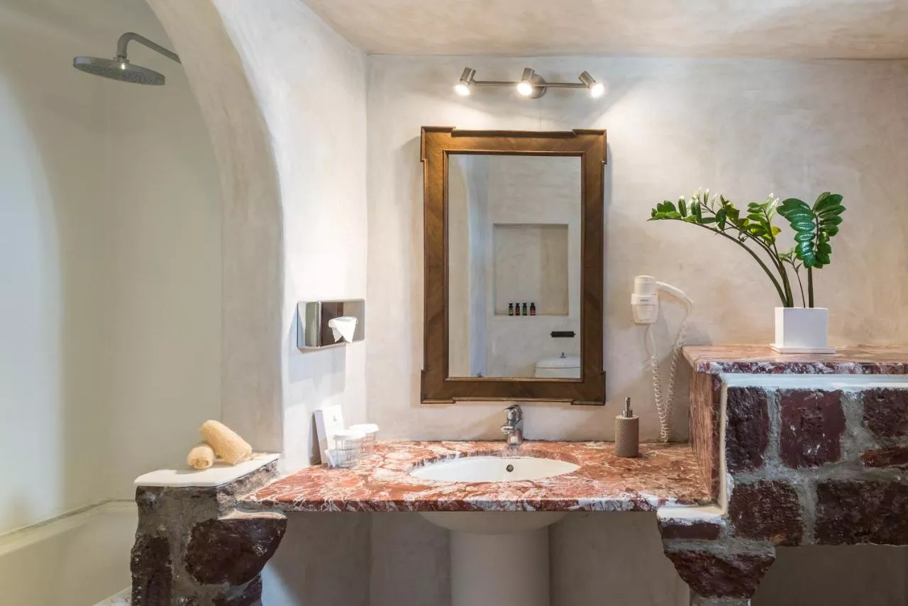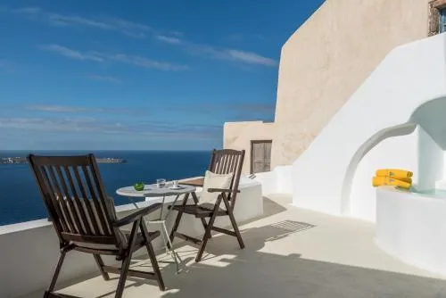 Dimensiuni: 40 mp Numar de camere: 1 camera Offering a mini outdoor whirlpool, and a furnished, private patio with sea and caldera views, this suite includes 2 bathrooms with shower and Apivita toiletries. It features: