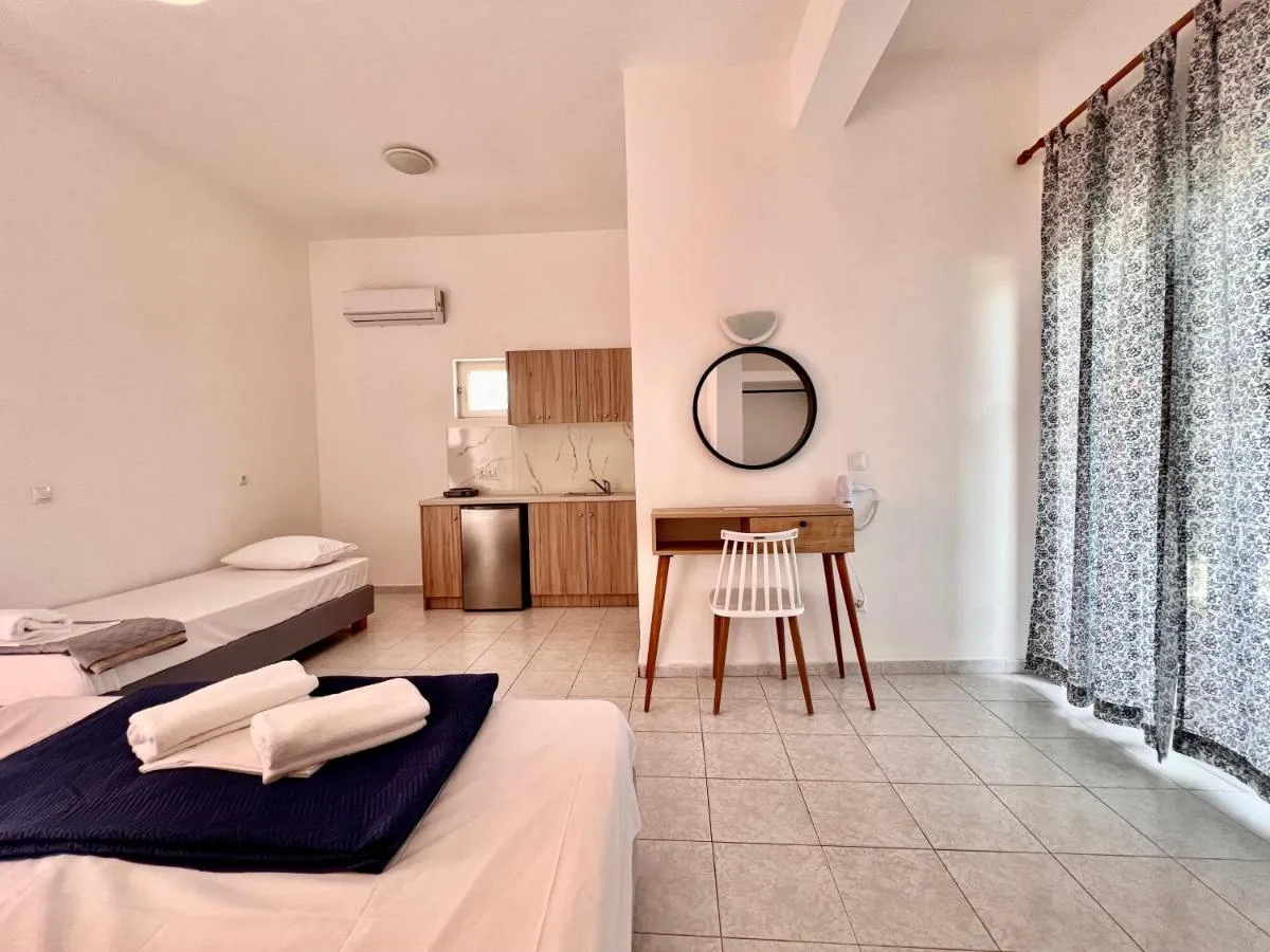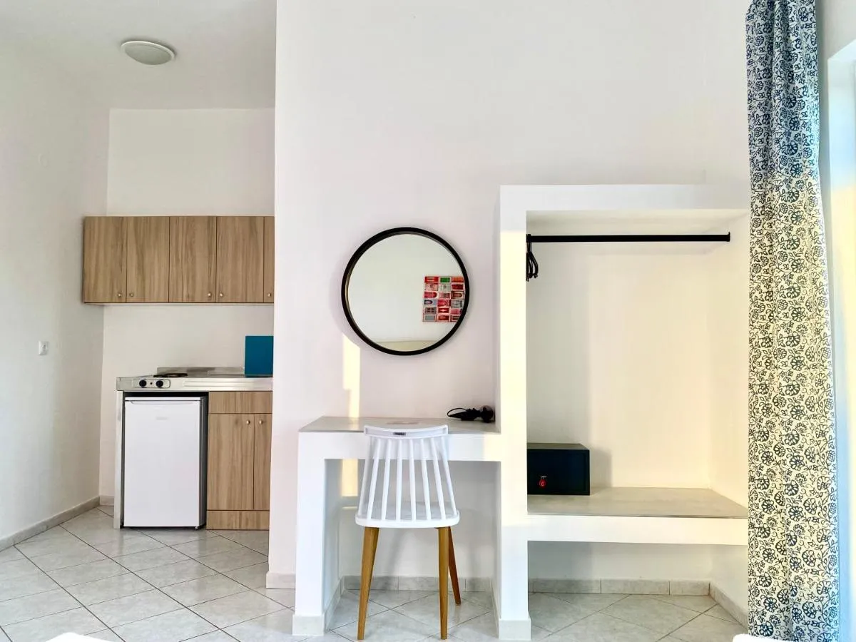 Studiourile de la Hotelul Fardini Seaside sunt dotate cu o chicineta cu plita de gatit, fierbator electric si frigider mini, toate avand o baie privata cu dus.
