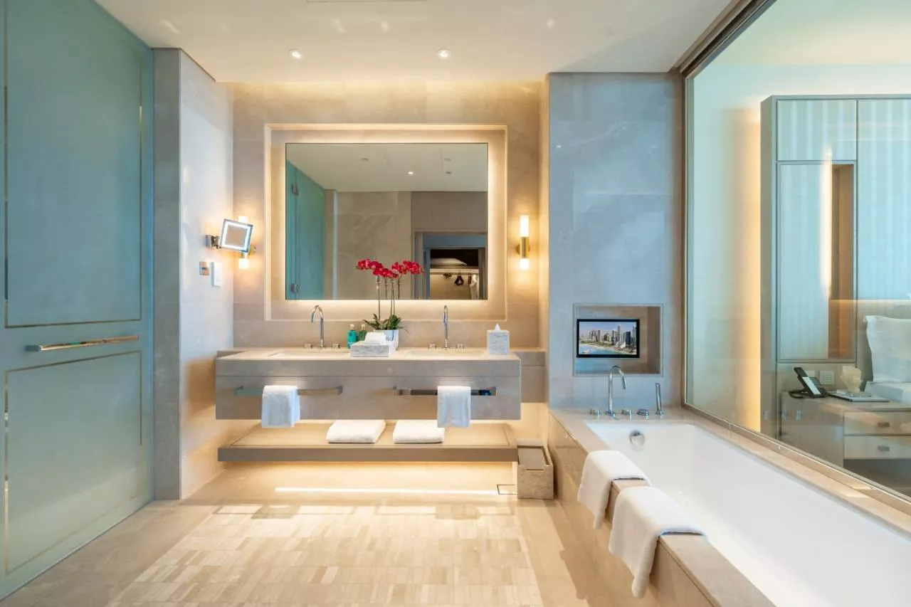 Baie: Halat de baie Prosoape Articole de toaletă gratuite Toaletă suplimentară Papuci de casă Uscător de păr Cadă spa Toaletă Duş bideu Cadă Baie privată Bucătărie: Mașină de cafea Cană fierbător General : Seif Fier de călcat Pardoseală de gresie/marmură Intrare privată Aer condiţionat Media/Tehnologie: TV cu ecran plat TV Serviciu de streaming (ex. Netflix) Telefon Canale prin satelit Servicii: Serviciu de trezire Zonă de living: Canapea Zonă de relaxare Zonă de luat masa Exterior: Mobilier de grădină Terasă Balcon Zonă de luat masa în aer liber Facilităţile camerei: Priză lângă pat Mâncăruri și băuturi: Aparat pentru prepararea de ceai/cafea Minibar Dormitor: Lenjerie de pat Garderobă sau dulap Vedere: Vedere la oraș Activităţi: Saună Cadă cu hidromasaj