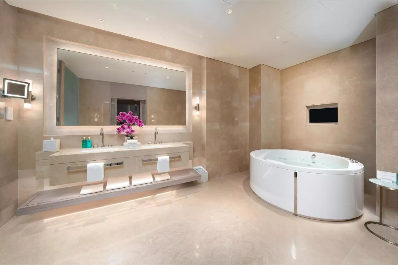 Dimensiuni: 235 mp Numar de camere: 3 camere Această suită pune la dispoziție cadă cu hidromasaj și saună. Suita are intrare privată, aer condiționat, cameră de zi, 1 dormitor separat și 1 baie cu duș tip walk-in și cadă. Suita este spațioasă și oferă TV cu ecran plat cu servicii de streaming, zonă de relaxare, aparat de ceai și cafea, minibar și vedere la oraș. Unitatea de cazare include 1 pat. Baie privată cu cadă