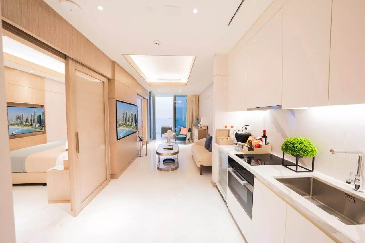 Dimensiuni: 577 mp Numar de camere: 1 camera Oaspeții vor avea parte de o experiență specială, deoarece suita oferă o cadă cu hidromasaj. Această suită are intrare privată, aer condiționat, cameră de zi, 1 dormitor separat și 2 băi cu duș tip walk-in și cadă. Bucătăria suitei este disponibilă pentru gătit și păstrarea alimentelor. Suita este spațioasă și oferă TV cu ecran plat cu servicii de streaming, zonă de relaxare, aparat de ceai și cafea, minibar și vedere la mare. Unitatea de cazare include 1 pat. Baie privată cu cadă