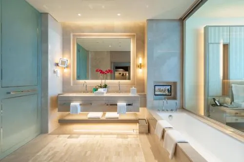 Baie: Halat de baie Prosoape Articole de toaletă gratuite Papuci de casă Uscător de păr Cadă spa Toaletă Duş bideu Cadă Baie privată Bucătărie: Mașină de cafea Masă Cană fierbător General : Seif Fier de călcat Pardoseală de gresie/marmură Intrare privată Aer condiţionat Media/Tehnologie: TV cu ecran plat TV Serviciu de streaming (ex. Netflix) Telefon Canale prin satelit Servicii: Serviciu de trezire Exterior: Mobilier de grădină Terasă Balcon Zonă de living: Zonă de relaxare Zonă de luat masa Facilităţile camerei: Priză lângă pat Mâncăruri și băuturi: Aparat pentru prepararea de ceai/cafea Minibar Dormitor: Lenjerie de pat Garderobă sau dulap Vedere: Vedere la oraș Activităţi: Saună Cadă cu hidromasaj