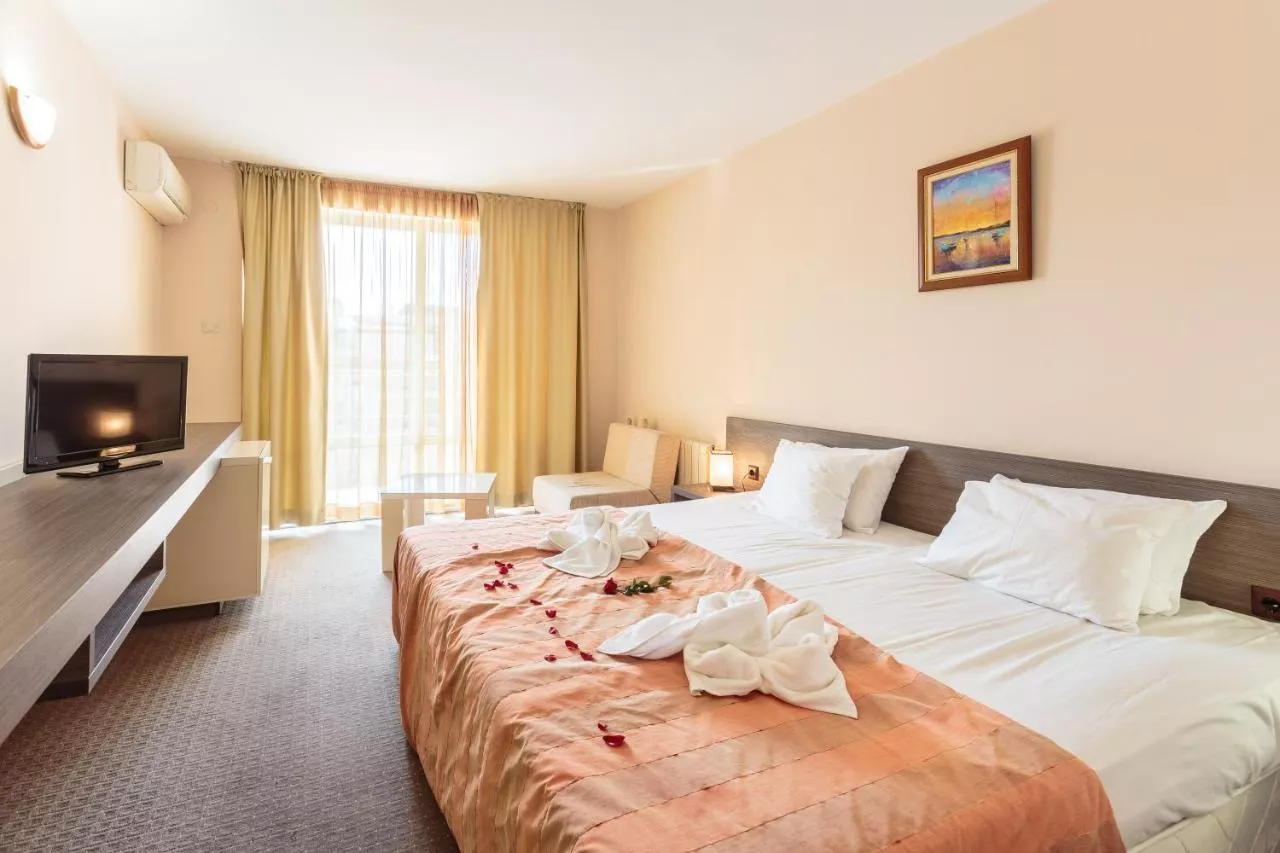 Acest hotel de 3 stele este situat în Sozopol, la 50 de metri de Plaja Harmanite și de Stadionul Sozopol. Oferă o piscină în aer liber cu o zonă pentru copii, o saună și un jacuzzi. Camerele spațioase sunt toate cu aer condiționat. WiFi gratuit este disponibil în întreaga proprietate.