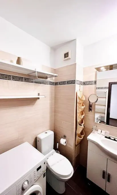 Dimensiuni: 57 mp Numar de camere: 2 camere This apartment comes with 1 living room, 1 separate bedroom and 1 bathroom with a bath and free toiletries. The well-fitted kitchen features a refrigerator, kitchenware, a toaster and an electric kettle. This apartment has air conditioning, a washing machine, flat-screen TV, as well as chocolate for guests. The unit has 2 beds.
