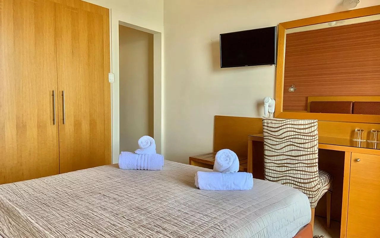Fiecare cameră cu aer condiționat de la Flisvos are un balcon privat, este luminoasă și decorată în tonuri pământii. Acestea sunt dotate cu un televizor și un mini-frigider, iar toate au o baie privată cu duș. Un uscător de păr și un fier de călcat pot fi oferite la cerere.