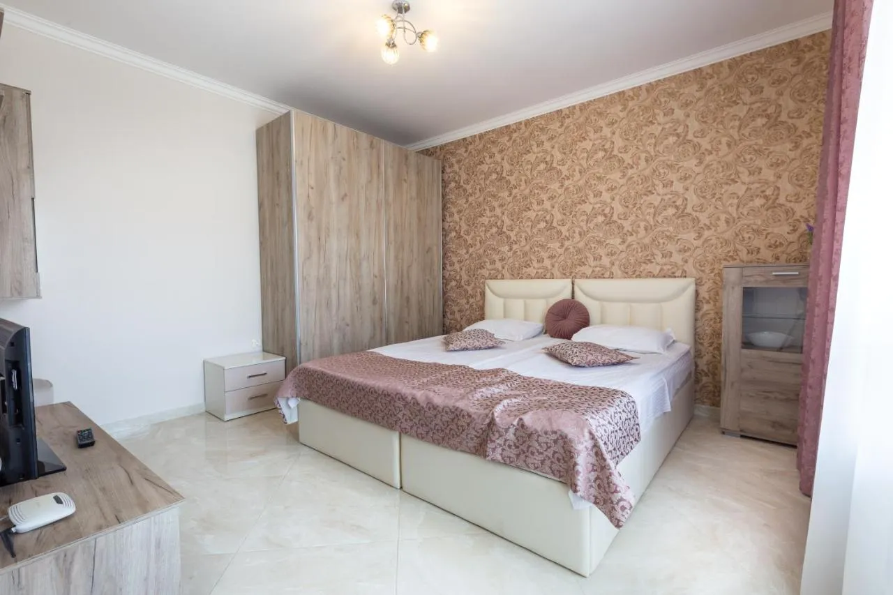 Dimensiuni: 74 mp Numar de camere: 5 camere The pool with a view and sauna are the special features of this apartment. Featuring a private entrance, this air-conditioned apartment is comprised of 1 living room, 1 separate bedroom and 1 bathroom with a shower and a bidet. In the well-fitted kitchen, guests will find a stovetop, a refrigerator, a dishwasher and kitchenware. The spacious apartment offers a flat-screen TV with cable channels, a washing machine, soundproof walls, executive lounge access as well as sea views. The unit offers 2 beds. Baie privată cu duș