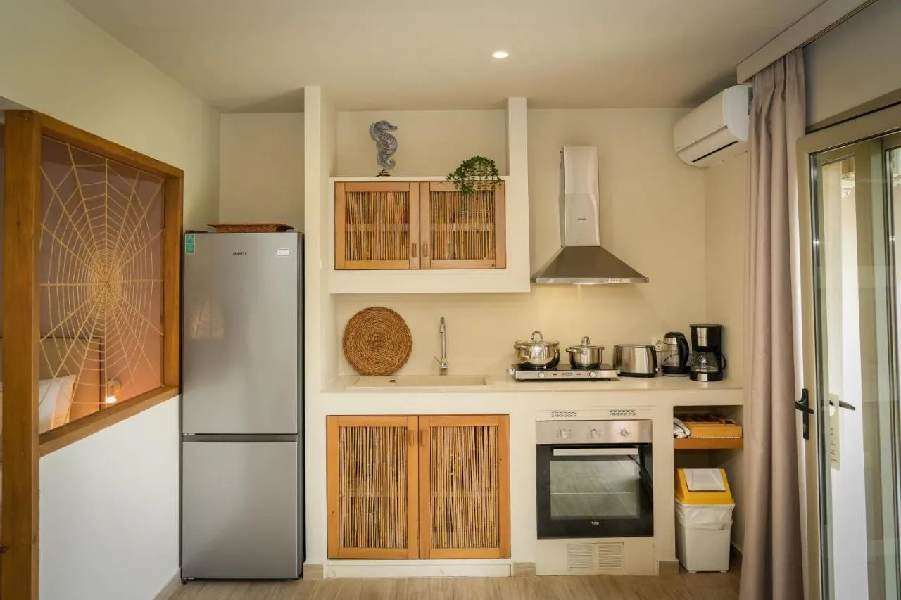 Unitățile au pardoseli cu gresie și includ o bucătărie complet echipată cu frigider, un televizor cu ecran plat cu canale prin satelit și o baie privată cu duș și papuci. De asemenea, sunt disponibile o plită și ustensile de bucătărie, precum și o mașină de cafea și un fierbător. În complexul de apartamente, fiecare unitate include lenjerie de pat și prosoape.