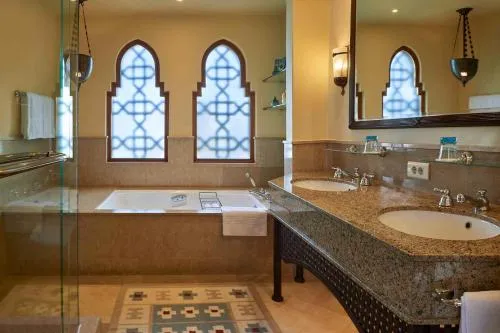 Dimensiuni: 115 mp Numar de camere: 6 camere Această suită are un decor bogat, în tonuri de bej și maro, și pune la dispoziție aer condiționat și balcon privat. Oferă un living cu vedere parţială la Marea Roşie şi la curţile şi aleile complexului. Facilitățile includ TV cu ecran plat, aparat Nespresso, DVD player și CD player. Baia din marmură are duş, cadă şi articole de toaletă gratuite.