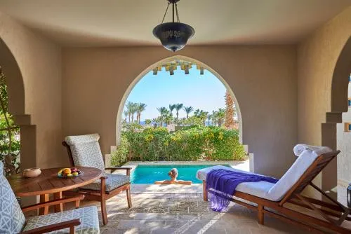 Dimensiuni: 75 mp Numar de camere: 1 camera Decorată în tonuri bogate de bej și albastru, această cameră oferă aer condiționat și terasă privată cu vedere la grădină, la Marea Roșie și la complex. Oaspeții au la dispoziție zonă de relaxare cu o canapea și o măsuță de cafea. Facilitățile includ TV prin satelit, aparat Nespresso și minibar. Baia include cadă, duș, uscător de păr și articole de toaletă gratuite.