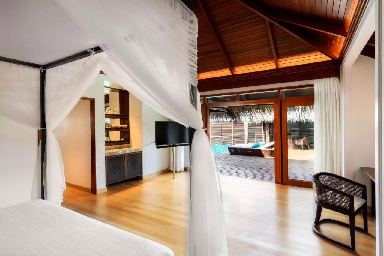 Resortul premiat cu cinci stele se mândrește cu o selecție diversă de cazare pentru oaspeți, care variază de la camere deluxe de grădină și cabane de plajă fermecătoare până la vile elegante pe apă, precum și o suită de apă cu 2 dormitoare.